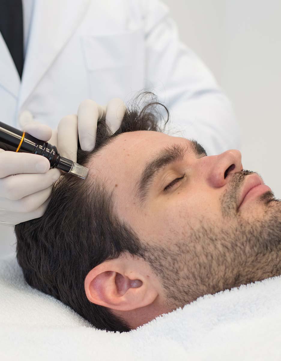 Utilizando um aparelho específico, o profissional realiza microperfurações controladas na pele do couro cabeludo. Essas perfurações são extremamente finas e superficiais, não causando sangramento significativo.